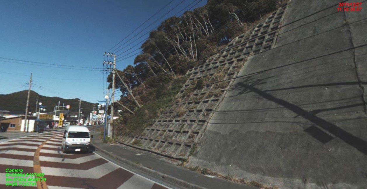 移動体計測(IP-S2 Lite) は車で走行するだけで走行路線周辺の3次元空間情報を効率的に収集することが可能なシステムです。360°全方位カメラで撮影と同時に、GPS/IMUによる位置と座標データを同時取得します。